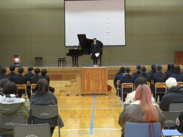 1月20日(火)は1日学習参観、放課後には学年学級懇談会がありました。普段の学校の様子を多くの保護者の皆様に見ていただけるようにと全日程授業を公開しましたが、たくさんの保護者の方に参観いただき、ありがとうございました。今回は、今年度最後の学習参観日、また、3学年では中学校最後の参観日になるので、3年生の生徒たちは保護者の方への感謝の気持ちを込め、音楽会で発表した学年みんなで歌詞を作ったオリジナルの合唱曲を発表しました。これから、生徒たちは、進級や卒業に向けてそれぞれの学年のまとめの時期となります。有終の美を飾り、次への良いスタートが切れるように残りの学校生活を過ごしていきたいと思います。残りわずかな3学期、保護者には大変お世話になりますが、よろしくお願いいたします。