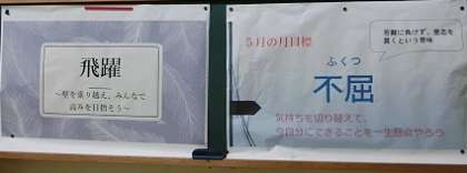一斉登校が始まり,少しずつ生徒会の活動が動き出しています。今年の生徒会目標は「飛躍 〜壁を乗り越え,みんなで高みを目指そう〜」です。コロナという大きな壁を全校生徒で乗り越えて,学校生活を盛り上げていきたいですね。