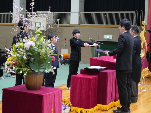 3月18日(水)に令和7年度卒業証書授与式・離任式退任式が行われました。卒業証書授与式では、臼井校長先生から126名の卒業生に卒業証書が授与され、中学校生活3年間の仲間、先生たちとのたくさんの想い出を胸に、北中を立派に巣立っていきました。今年度末をもって、12名の先生方が転退職、そして、臼井校長先生がご退任されることになりました。令和7年度、本校の教育活動にご理解・ご協力をいただき、誠にありがとうございました。令和8年度も引き続き、よろしくお願いいたします。